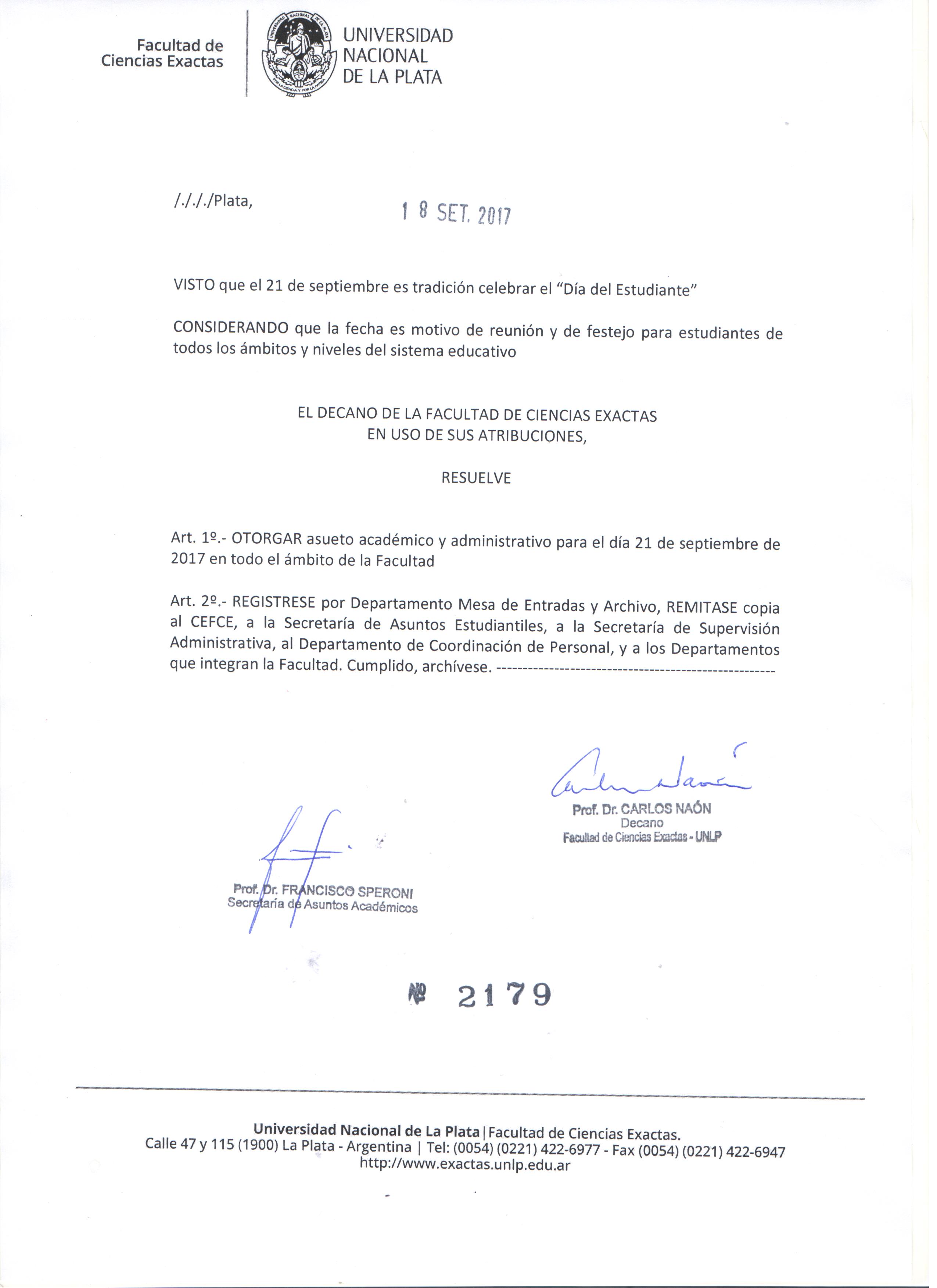 La Plata, 18 de septiembre de 2017