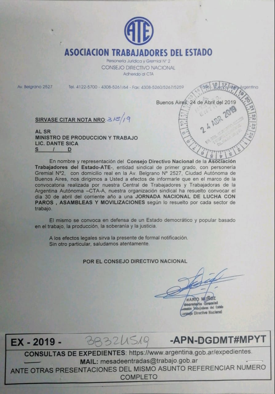 Desde la sede de ATE (8 entre 55 y 56) nos juntaremos a las 8 hs, para