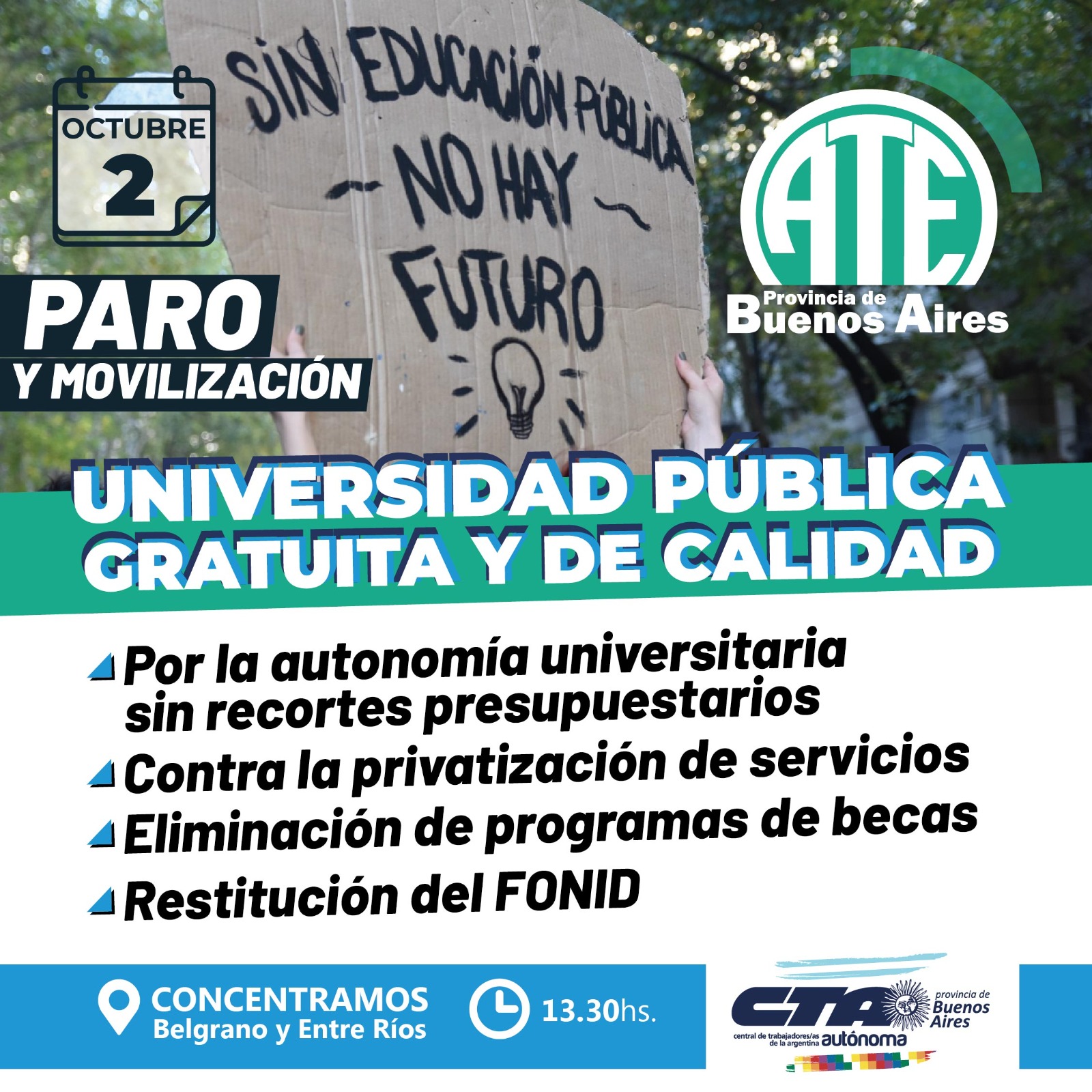 Les recordamos que mañana MIÉRCOLES 2 DE OCTUBRE, convocamos a PARO y a